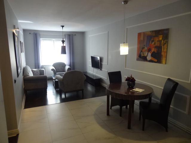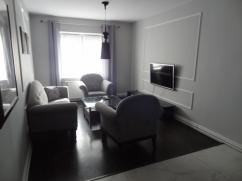 APARTAMENT TRZYPOKOJOWY W KROŚNIE. Do wynajmu apartament w Krośnie znajdujący się w centrum miasta, położony w jednej z kamienic zabytkowego zespołu staromiejskiego. Apartament położony jest na pierwszym piętrze, w kamienicy mieszkalno-usługowej. Nieruchomość o łącznej powierzchni użytkowej 99,53 m2, składa się z aneksu kuchennego i salonu 30,03 m2, dwóch sypialni 12,99 m2 i 19,32 m2, łazienki z pomieszczeniem gospodarczym 12,19 m2, ubikacji 1,17 m2 oraz hollu 23,83 m2. Apartament jest urządzony i wykończony, w biało-szarej tonacji. Zabudowa aneksu kuchennego jest wyposażona w płytę grzewczą, zlewozmywak, zmywarkę i lodówkę podblatową. W skład mieszkania wchodzi także pięknie zaaranżowana łazienka z prysznicem i wanną oraz osobnym wc oraz dwie sypialnie, zaopatrzone w łóżka. W salonie znajduje się komplet wypoczynkowy oraz stół z krzesłami. W hollu znajduje się szafa przsuwna. Dodatkowym atutem zapewniającym odpowiedni klimat jest kominek elektryczny w korytarzu. Nieruchomość możliwa do wynajęcia od zaraz. Wejście do apartamentu odbywa się poprzez klatkę schodową.